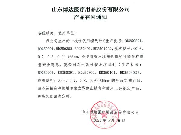 山東博達醫(yī)療用品股份有限公司是生產(chǎn)可吸收性外科縫線專業(yè)廠家,主要產(chǎn)品有可吸收縫合線 、內(nèi)窺鏡圈套線、穴位埋線、快吸收美容線、醫(yī)用羊腸線 膠原蛋白線以先進的生物技術(shù)提取了健康哺乳動物內(nèi)臟的膠原蛋白為基材,采用先進的工藝加工而成,線體的主要成分為高純度膠原蛋白,并獲得了國家發(fā)明專利,頒布了YZB/國6301-2013《可吸收性外科縫線》產(chǎn)品標準,并通過了ISO9001:2015和ISO13485:2016質(zhì)量管理體系認證。